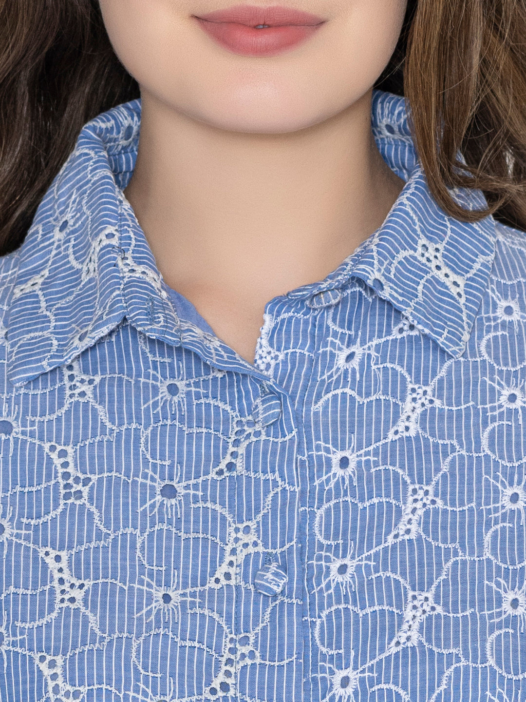 Floral Broadries Cotton Shirt Midi Dress With inside cotton lining and belt