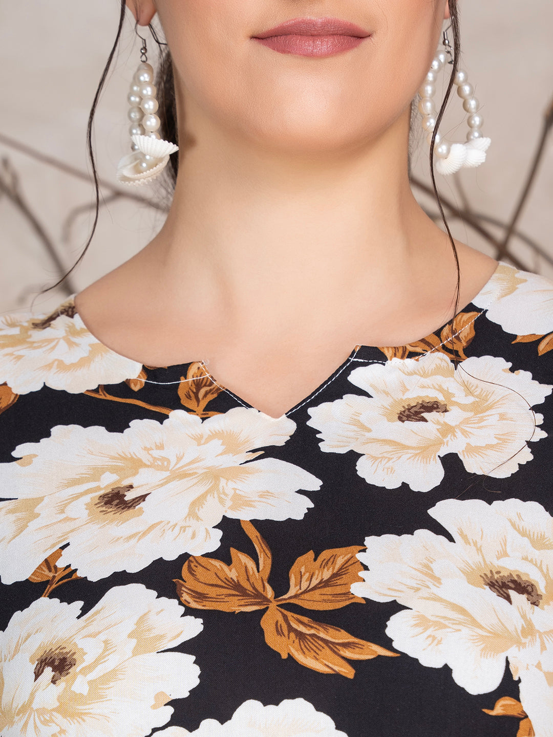 Black Floral Printed Tunic With Trousers Co-Ords Set