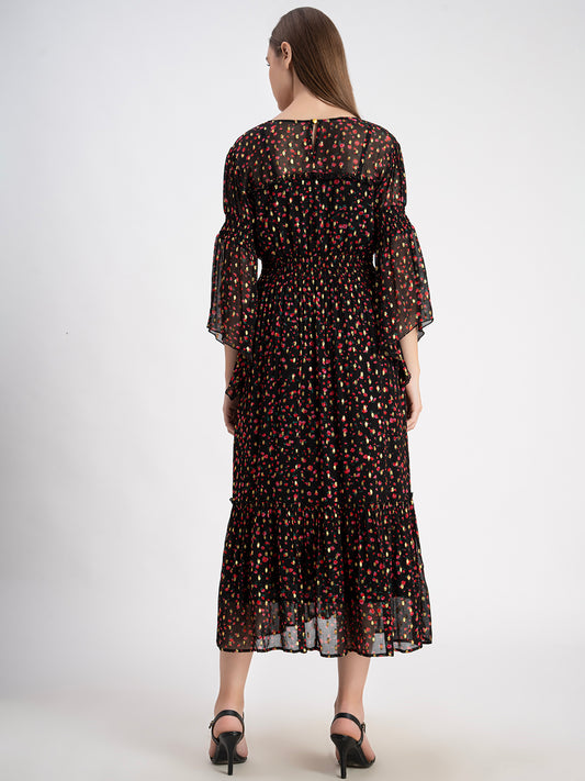 Floral Print Chiffon A-Line Midi Dress